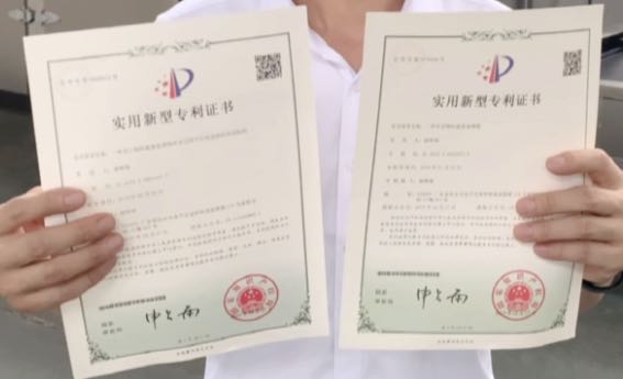 这个多层循环立体烘箱有很多独特的设计,我们把其中大的技术改进申请了,已经获得国家授权,这是两份证书。