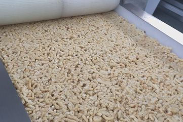 - 2017年10月19日,我公司迎来了德国客户的现场验机。本次使用SMCP-70J挤出膨化机实验,分别以大米、非洲粮食、玉米为对象;从实验结果看,星形米花的膨化度非常高,产量较大;非洲粮食膨化的成型效果最佳,成品率高;玉米的膨化效果相比大米而言,颜色更加鲜艳,呈淡黄色,比较有食欲感;...