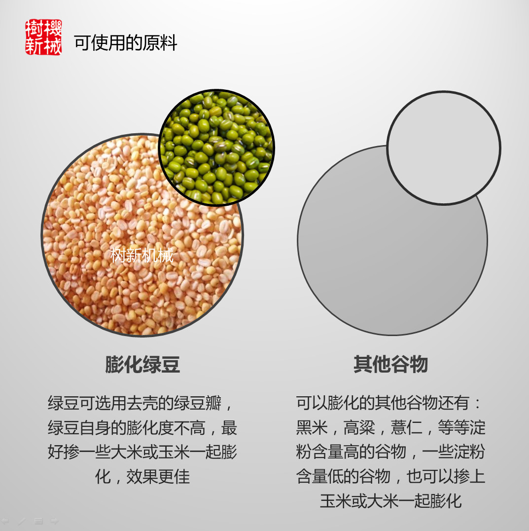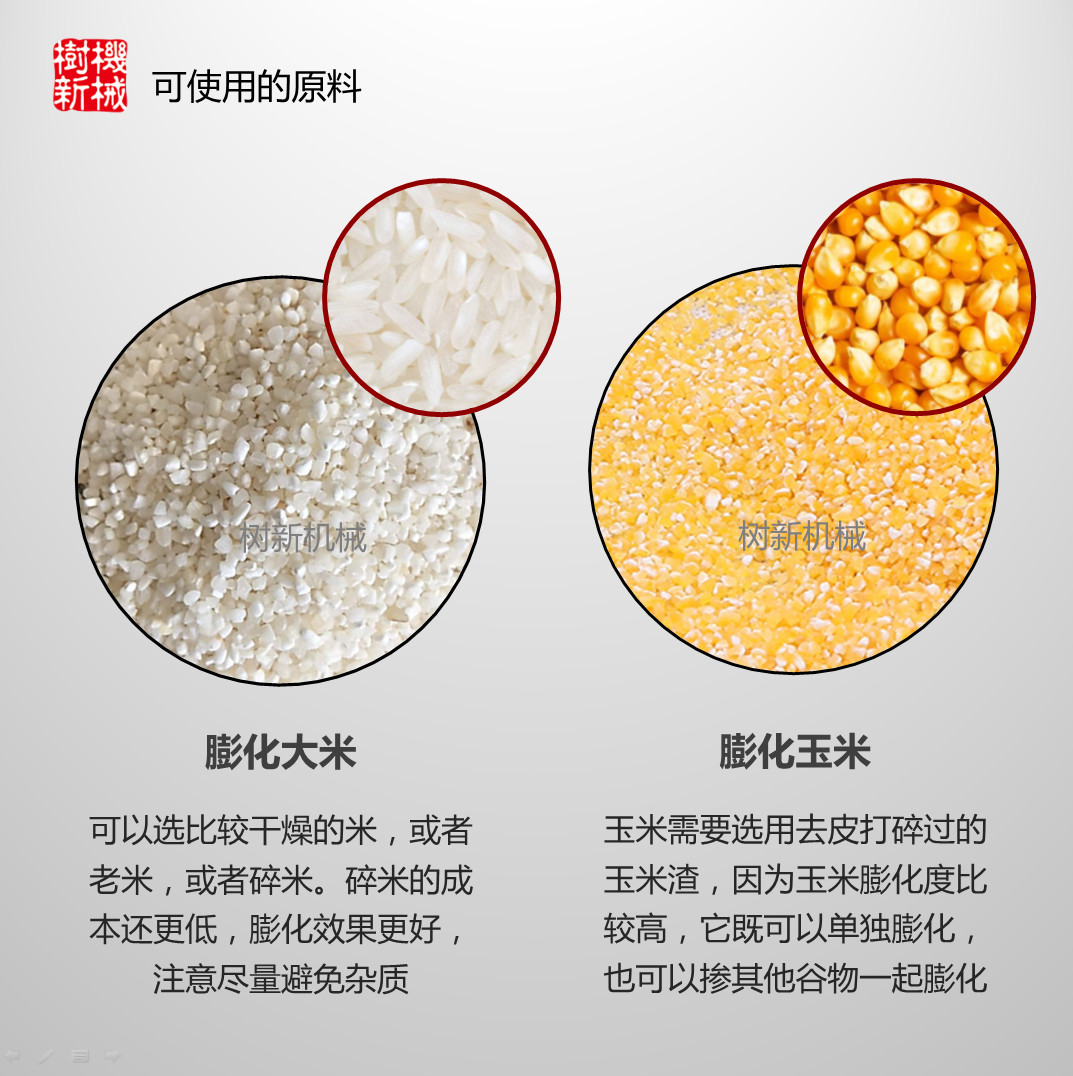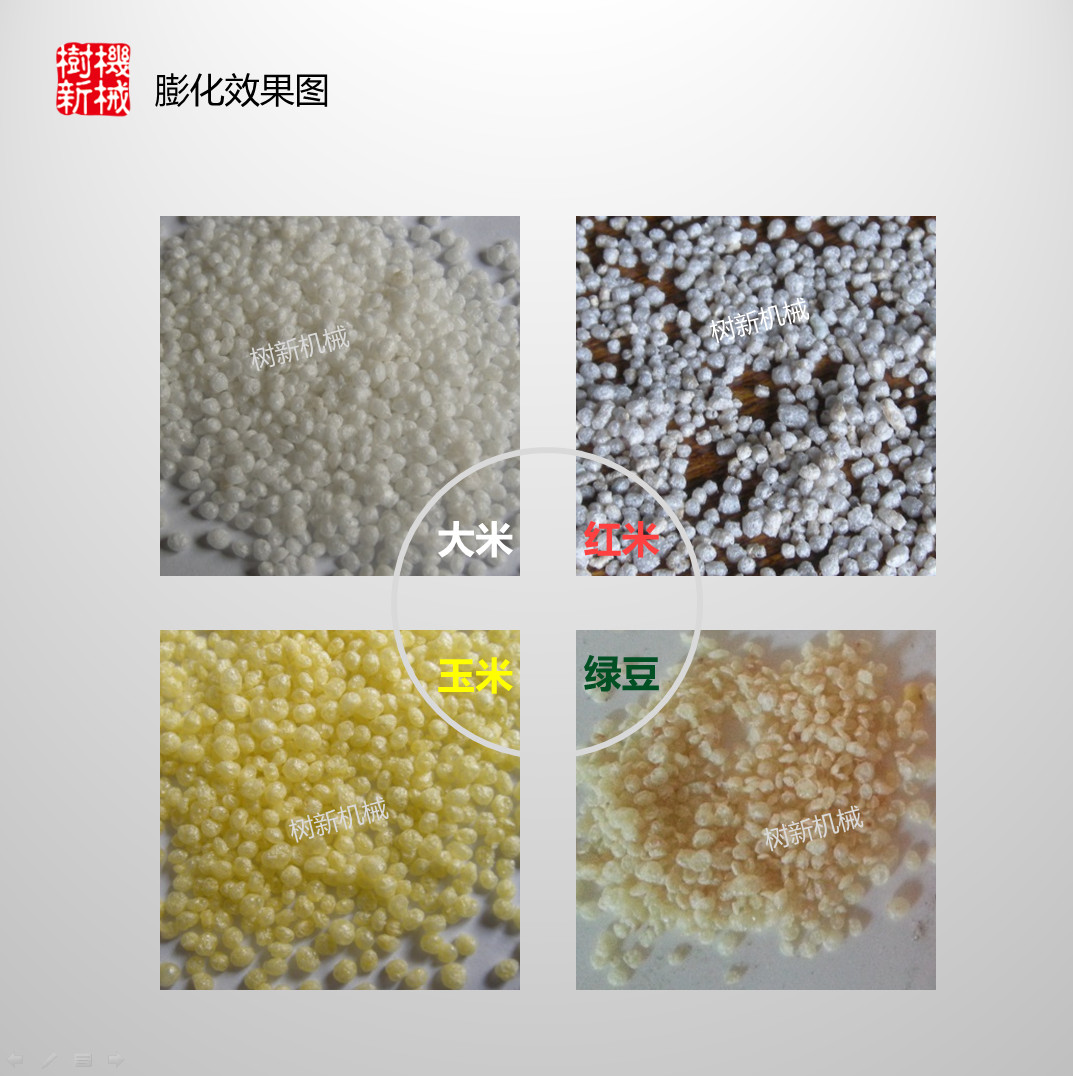 适合膨化大米,玉米,绿豆等谷物,可做成大小不同形状各异的米花,机器产量可达100KG每小时,高配置,耐用,操作简单,值得购买。