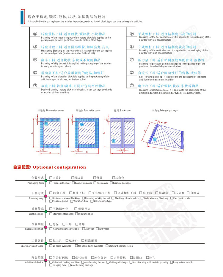 4.多种包装形式,多种下料方式自由组合,适合各式各样的包装物品;