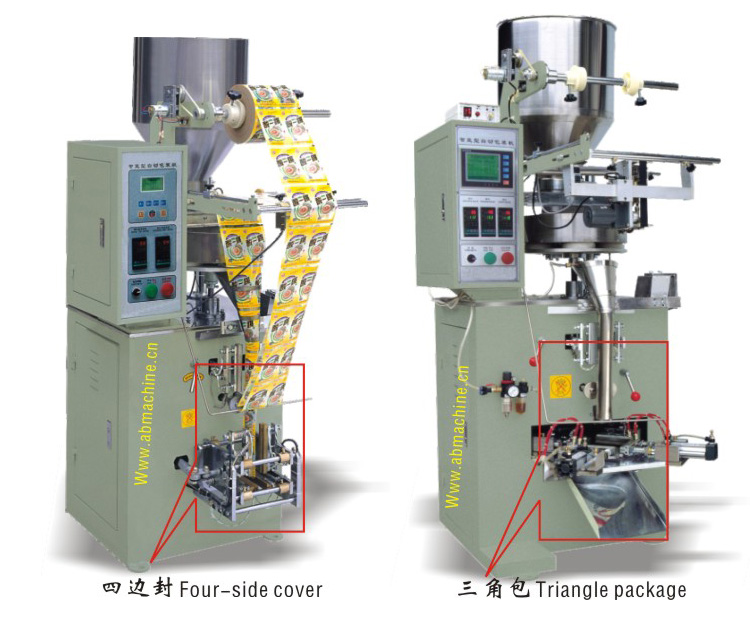 - 适应对象:粉剂,颗粒,块状,条状,不规则物品,如:膨化食品,糖果,谷物,豆类,奶粉,调味品,麦片,茶叶,小玩具,螺丝,樟脑丸,干燥剂.多种包装的形式,多种下料方式自由组合,适合各式各样的包装物品.自动完成制袋,充填,封口,切断,充气,打码,限量停机,定包分切等一系列动作.