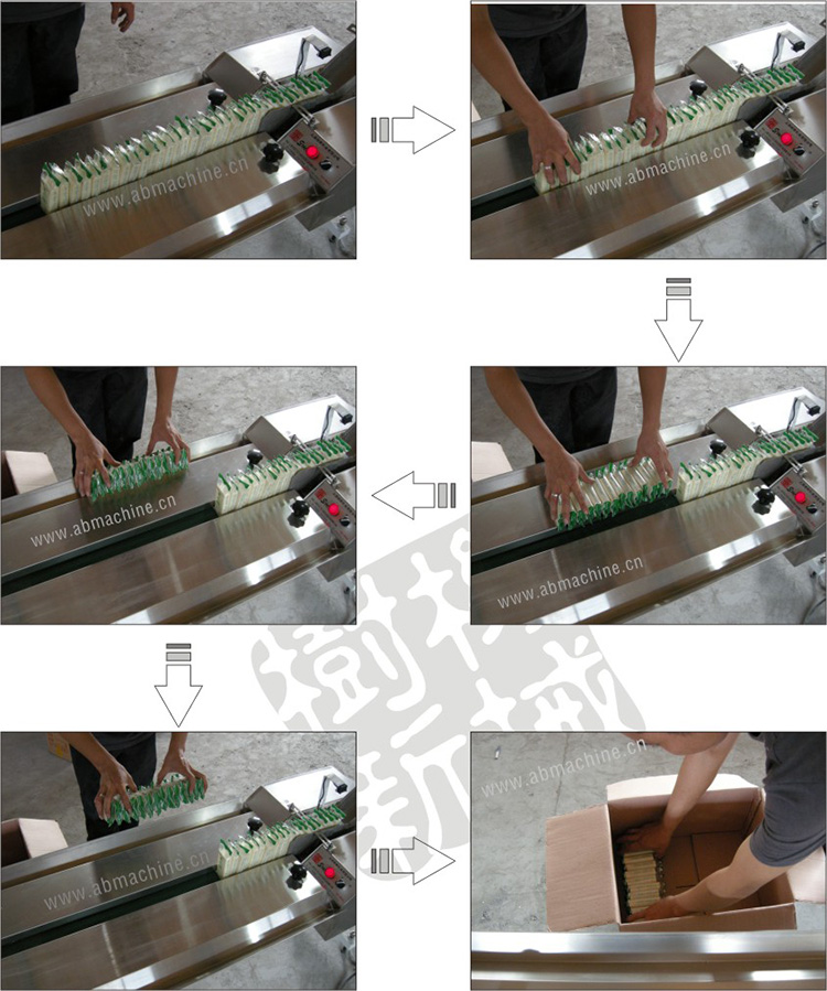 • 适用对象:方形,圆形,小盒装,片装,等块状包装物(宽度>厚度).SMZL-110/150是专为包装机配套设计的一款自动整理机,与包装机输出口连接, 将包装好的产品整理整齐,方便收纳装箱,减少人工,降低劳动强度并提高效率.最大整理物品宽度110/150mm